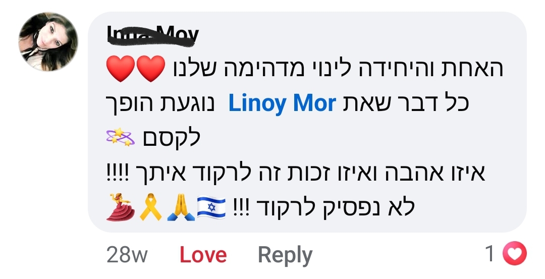 כשאני רואה אישה שמתחילה לזוז אחרי שנים שלא העזה לרקוד, כשאני שומעת תלמידה אומרת לי שזה הרגע הכי טוב ביום שלה – אני יודעת שאני עושה את מה שנועדתי לעשות.