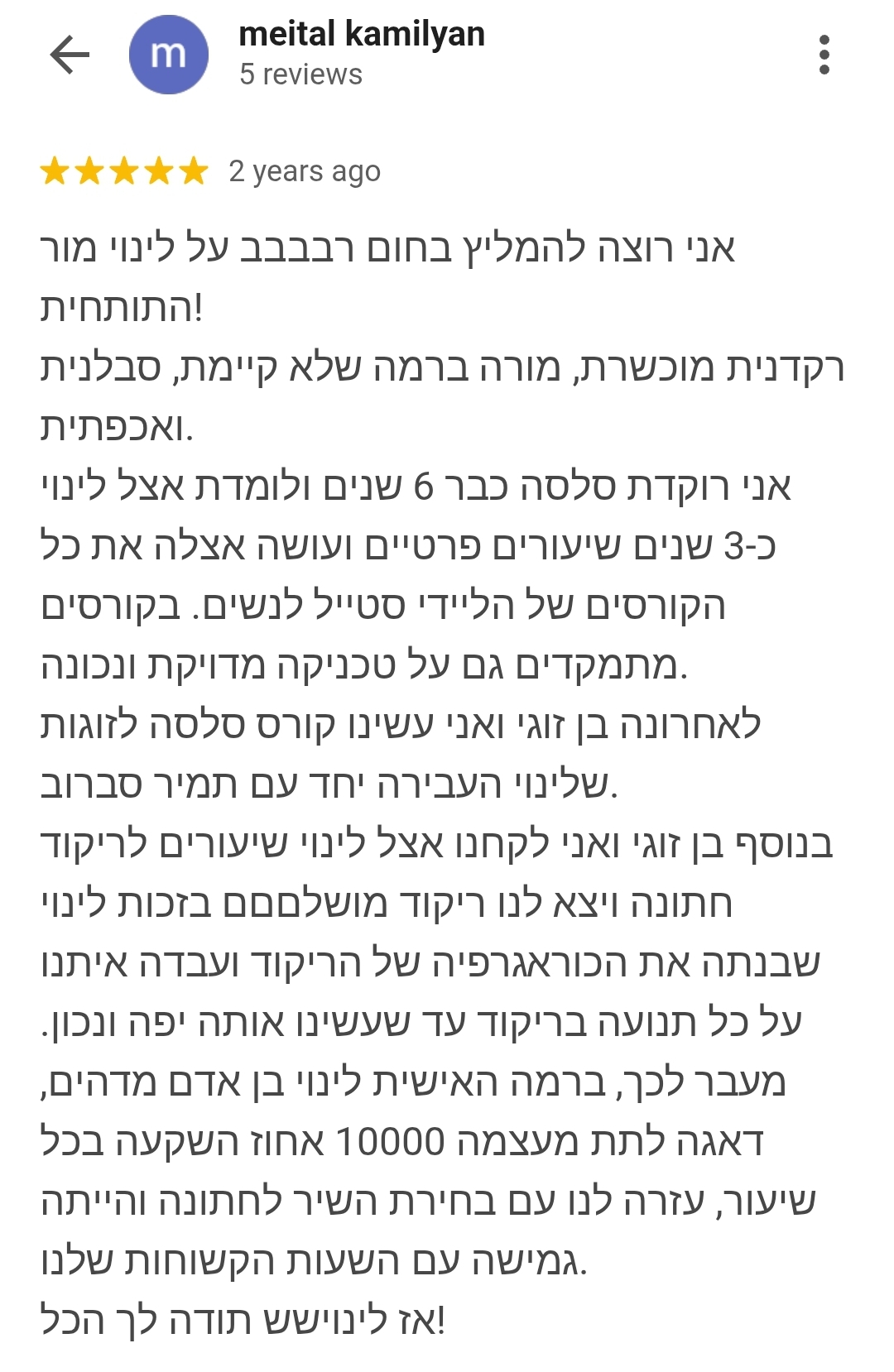 העבודה שלי משלבת מקצועיות גבוהה עם יחס אישי וחיבור אנושי – כי מבחינתי, ריקוד הוא לא רק תנועה – הוא דרך חיים.